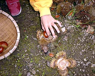 10分ほどで、こんなにたくさんのくりがひろえました。 「おばあちゃんにゆでてもらおっと!」 |