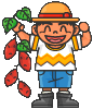 わーい、わーい! Pちゃんたちは大喜びです。 「こんなに大きなイモがほれたよ!」 |