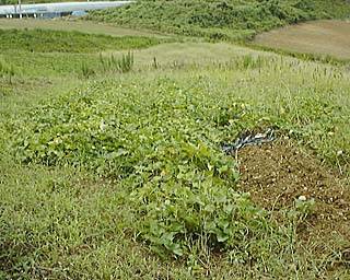 ここがイモ畑です。 どこにサツマイモがうまっているかわかりますか? ![]() |