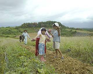| というわけで、車で15分・・・イモ畑に着きました。 | |