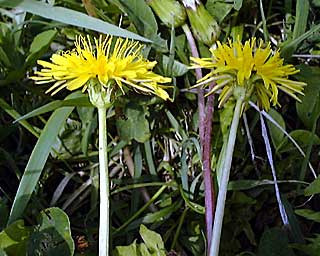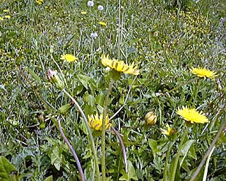 | 何のへんてつもない、ふつうのタンポポですが・・・よーく見てみると、花のうらのガクのようにみえる部分が町のタンポポと少しちがうでしょ? これは、昔から日本にあった種類のタンポポですが、都会では外国から入ってきたセイヨウタンポポがほとんどです。 |