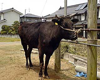 Pちゃんのおじいちゃんちのおとなりでは、牛を飼っています。 ここの牛は牛乳をとるための牛ではなく、お肉になるための牛です。美作牛(みまさかぎゅう)といって、とても高級な牛肉になります。 |