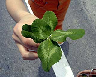 | 最後に登場は、四葉のクローバです。めずらしいので見つけたらうれしいのですが、なんとおじいちゃんのたんぼの横には、四葉どころか、五葉、六葉のクローバがたくさんありました。 押し葉にしてあるので、Pちゃんはしおりでも作るのかな? みなさんは、連休中に何かおもしろいこと、よかったことはありましたか? |