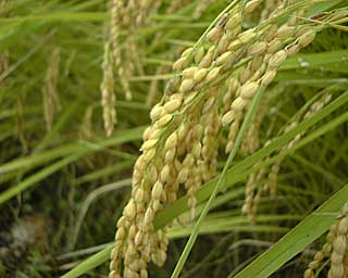 たわわに実っている稲穂(いなほ)です。 この中に、おいしいお米がいっぱいつまっているのです。 |