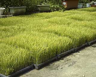 今日はお母さんの実家(岡山県)で田植えです。 おじいちゃんが70歳をこえているので、そろそろみんなで手伝いに帰らないといけません。 すくすく育ったイネの苗(なえ)です。おじいちゃんが大事に育てたものです。 ちなみにこのイネは、コシヒカリです。 |
